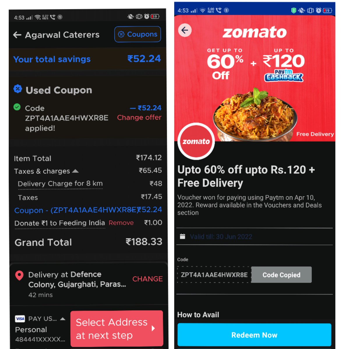 Zomato coupon code today for existing users